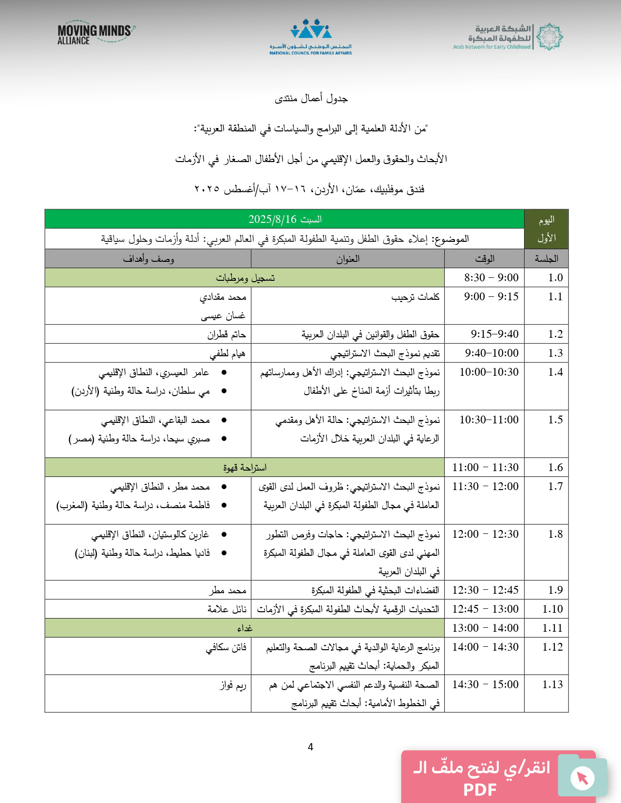 المنتدى الإقليمي الأول حول بحوث الطفولة المبكّرة في الأزمات